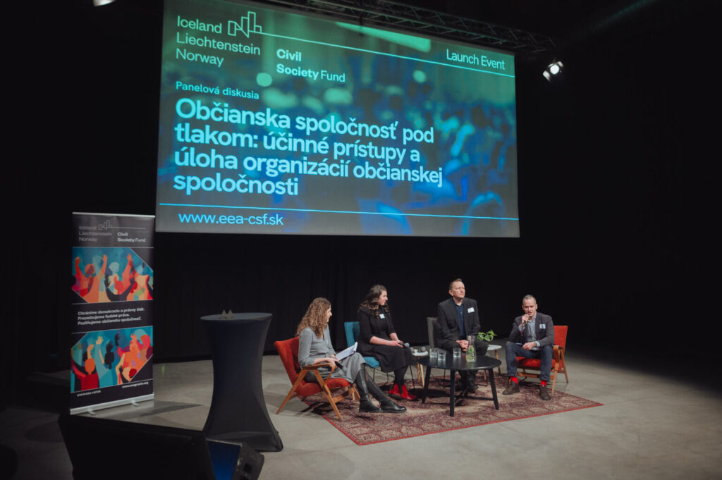 Tento nový grantový program znamená nové príležitosti pre ľudí, ktorí sa venujú ochrane ľudských práv, posilňovaniu demokracie a budovaniu občianskej spoločnosti. Preto domáci a zahraniční hostia rozprávali aj o stave občianskej spoločnosti na Slovensku, o tlakoch, ktorým čelí a o možnostiach ochrany zraniteľných i demokracie.